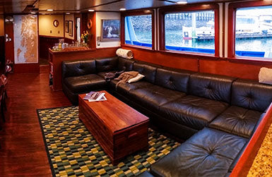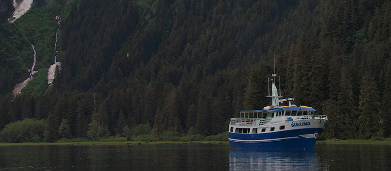 Your base of operations is the expedition-style yacht Sikumi — one of the finest hunting vessels operating in Southeast Alaska. Built with a rugged steel hull and finished with a warm, wood-trimmed interior, Sikumi blends the durability of a commercial trawler with the comfort of a luxury cruise ship.